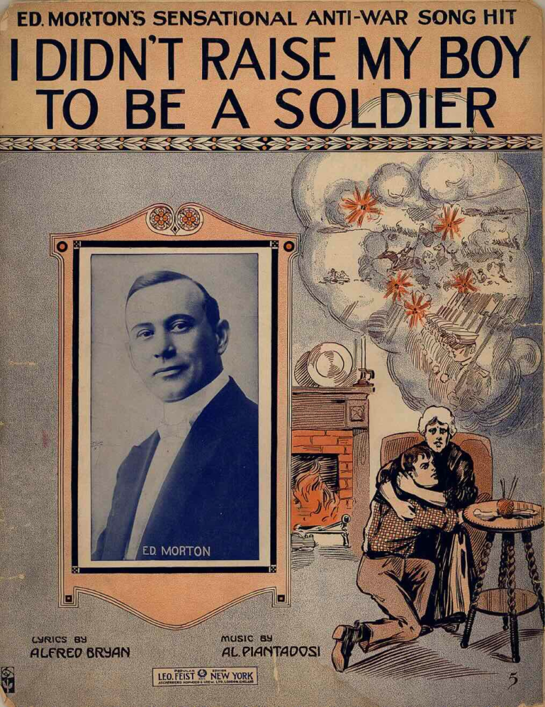 And parodies of the song came out as well: ‘I Did Not Raise My Boy to Be a Coward’, ‘I Didn’t Raise My Boy to Be a Soldier, but I’ll Send My Girl to Be a Nurse’, ‘I Didn’t Raise My Dog to Be a Sausage’… and on and ON!