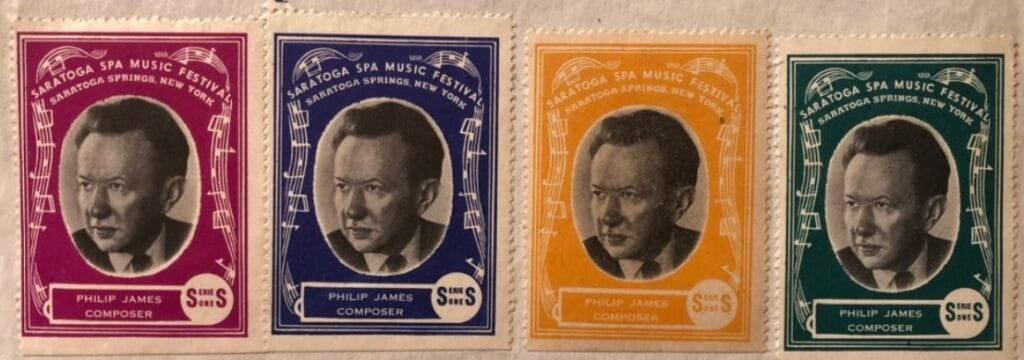 And I LOVE stamps, for instance the Saratoga Springs Music Festival in the forties. These stamps are popular among collectors of ‘cinderellas‘, stamps not issued for postal purposes. They typically feature green-and-white designs with portraits of musicians and composers. Here are some of them: