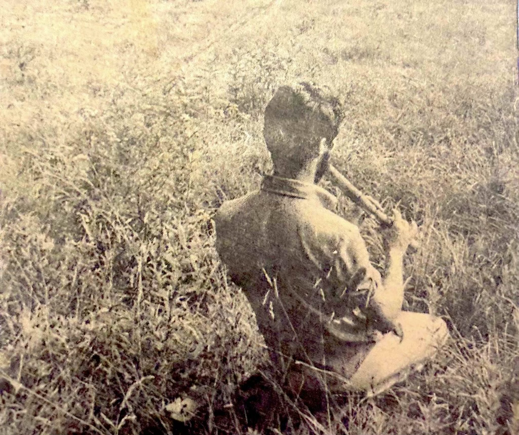 I just found this old newspaper article, from 1986. It shows me playing shakuhachi in a vast field, and the headline is: One Man’s QUEST: Phil James finds happiness is simple.