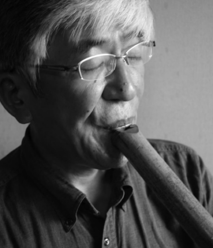 Studying under Matsumura Homei of Nara, in 1976 he performed his first solo concert, winning the Osaka Cultural Festival Award. Four years later he became director of the Mujuan shakuhachi school founded in Kyoto by his father, and shortly afterward began touring throughout Asia, Europe, Israel, and the U.S. Since 1995, his annual intensive classes throughout the U.S. have become very popular. His sense of humor and generous attitude are well known to his students (who simply call him ‘sensei’), and to many others who enjoy traditional shakuhachi music. Today, because of his exceptional technique and a wide repertoire bridging traditions and cultures alike, Kurahashi Yodo II is sought by composers and musicians of many genres wishing to incorporate shakuhachi into their music.