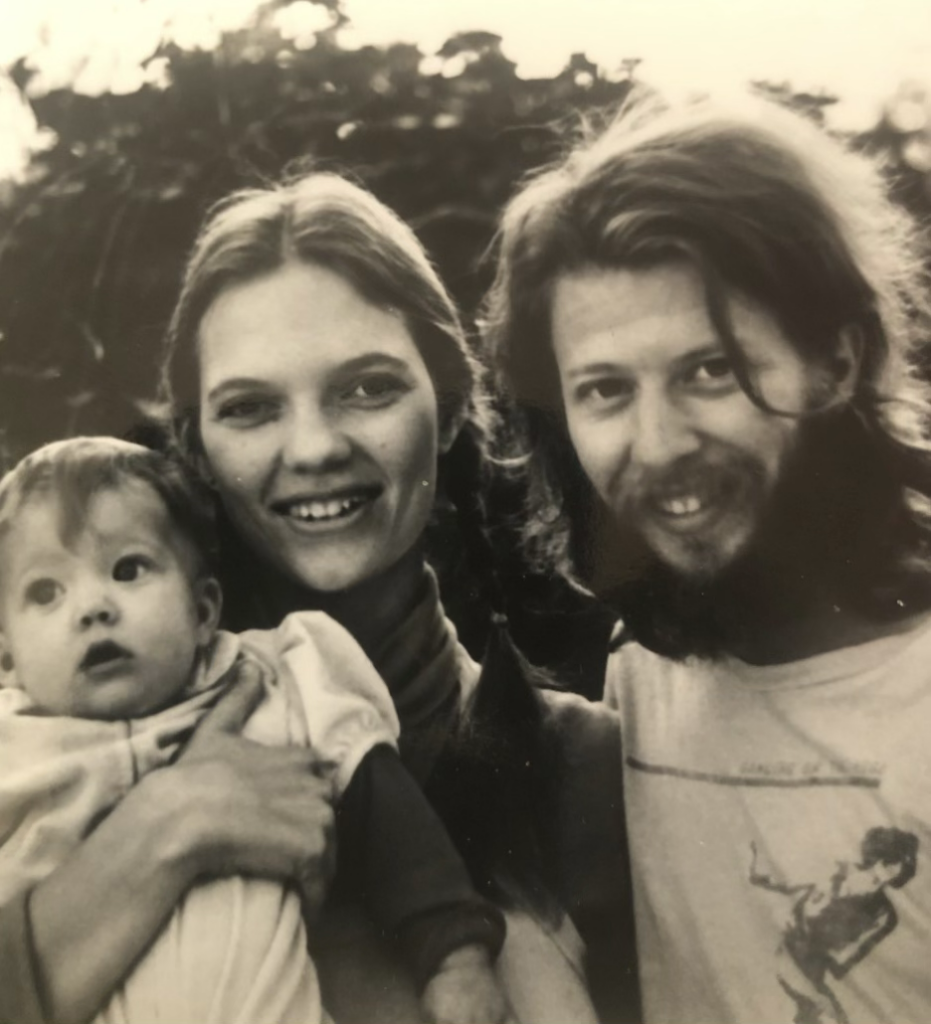 I met a fascinating woman named Kim. She was just becoming a midwife, and she was kind of a hippie, like me. So we got married. And here we are with our brand new baby, Sierra. Later on Aaron would be born.